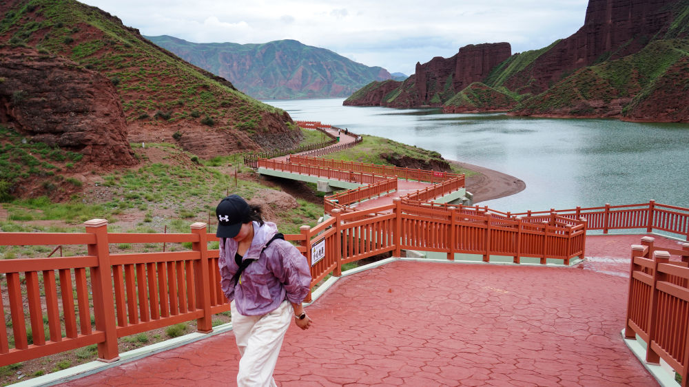 7月24日,游客在坎布拉世界地质公园景区游玩。